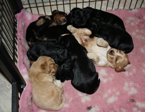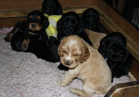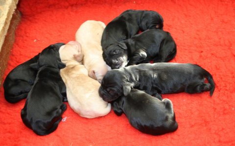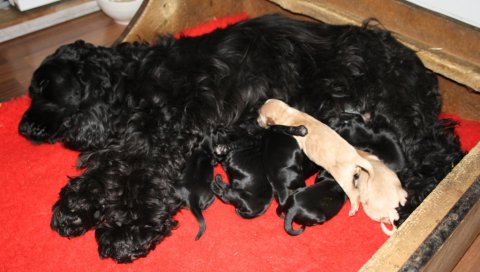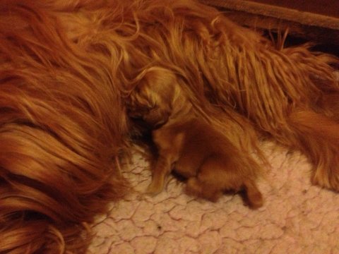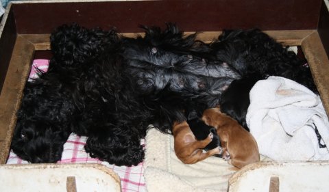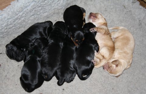 Emily har født 7 sunde og raske hvalpe. 3 røde hanner, 2 sorte hanner og 2 sorte tæver.
