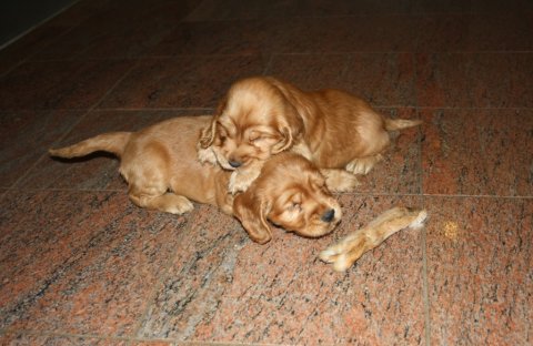 Så er der afreageret og almindelig afslapning - Hvalpelivet nydes i fulde drag - nu 6 uger gamle