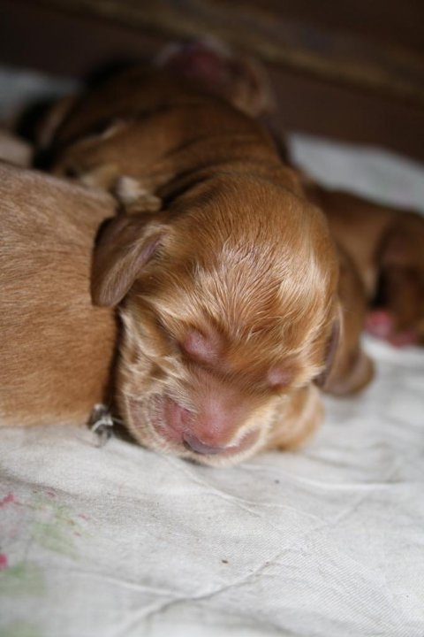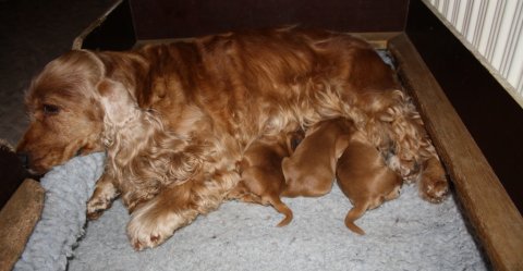 nedkom d 30. januar med et dejligt kuld på 4 hvalpe.
